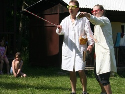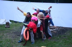 Ve středu ráno jsme se probudili do krásného slunečného dne, který jsme zahájili tradiční již třináct let osvědčenou rozcvičkou. Dopoledne jsme si hráli v lese, některé oddíly se vypravili i za nákupy do Hartmanic, většina ale psala scénáře na večerní divadelní představení.