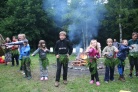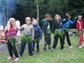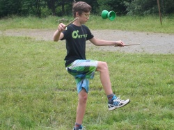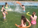 Dopoledne jsme trávili s oddílem a různě jsme se zabavovali. Některé oddíly hrály hry, některé si uklízeli chatičky, jiné šli do lesa. Zbyl i čas na vykoupání se v bazénu.