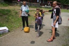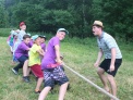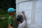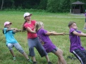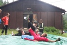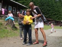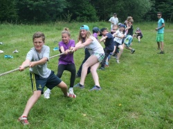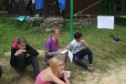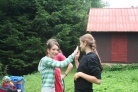 Dnes celý den probíhala velká sportovní olympiáda všech dětí. Dopoledne jsme chodili po deseti stanovištích, kde jsme plnili sportovní úkoly, za které dostaneme auriny- př. hod kapesníkem do dálky, trojskok z místa, slack- line, přetah nohou ležmo, kros, opičí dráha, hod létajícím talířem na cíl,hod kostkou levou rukou, získej nejvíc bodů aj. Odpoledne jsme zase nastoupili na soutěže podle našich cechů- př. malování poslepu, přetahování lanem, americký fotbal, přenášení vody, mít co nejméně nohou na zemi. Na nástupu jsme si zase zazpívali novou písničku a vedoucí nám plní další přání, jako např., že budeme mít diskotéku a vedoucí nám jeden den budou vařit. Po večeři jsme vyzvali naše vedoucí na kopanou, přehazovanou a volejbal. Bohužel hodně toho vyhráli vedoucí. Máme pocit, že Gozer nám neustále škodí v táboře. Na některých chatkách začaly praskat žárovky, někde nešly zavřít dveře a občas nemůžeme na chatce najít některé svoje věci, které nám asi vzal ( pod postele jsme se ještě nedívali). A také děkujeme rodičům za vzkazy v knize návštěv, které nám jsou tištěny a předávány.