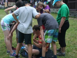 Dnes jsme se opět probudili do krásného rána. Většina oddílů byla v noci na bivaku a v průběhu dopoledne se teprve vracela. Dospěláci pro nás připravili super skluzavku na igelitu na trávě, na které jsme se celé dopoledne vyřádili. Stihli jsme i bazén, sprchování a těšili jsme se na smažený sýr, který byl dnes k obědu.